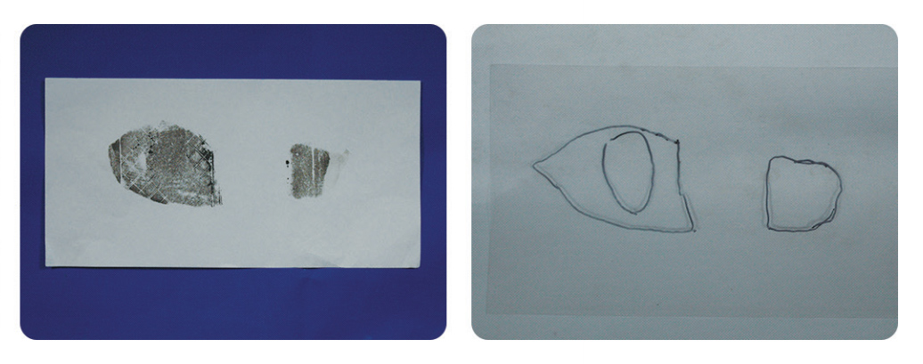 高度透明的PET塑料片。将两张透明塑料片分别放置在现场足迹和样本足迹上,用记号笔分别标画足迹的特征点,再对两张塑料片进行重叠检验。