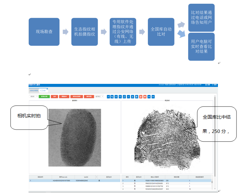具备BTCG-Ⅰ型超宽光谱物证拍照相机的所有功能。与BTCG-Ⅰ型相比,增加了现场指纹远程查询比对的功能。过公安网与“全国犯罪嫌疑人指纹库”连接,现场拍照的指纹能够实时上传至“全国犯罪嫌疑人指纹库”,自动比对,实时反馈比对结果,这个过程所需时间3-5分钟。“全国犯罪嫌疑人指纹库”目前拥有约8000万人份前科人员十指指纹捺印数据。
