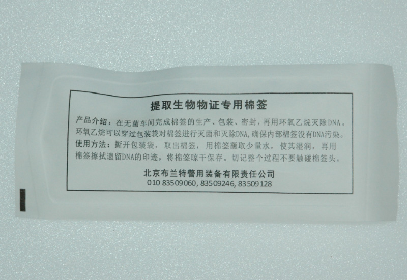 3.使用方法:用棉签蘸取提取液,使棉签湿润,再用棉签擦拭遗留DNA的印迹,将棉签放入专用保存盒,确保棉签不与任何物体接触。